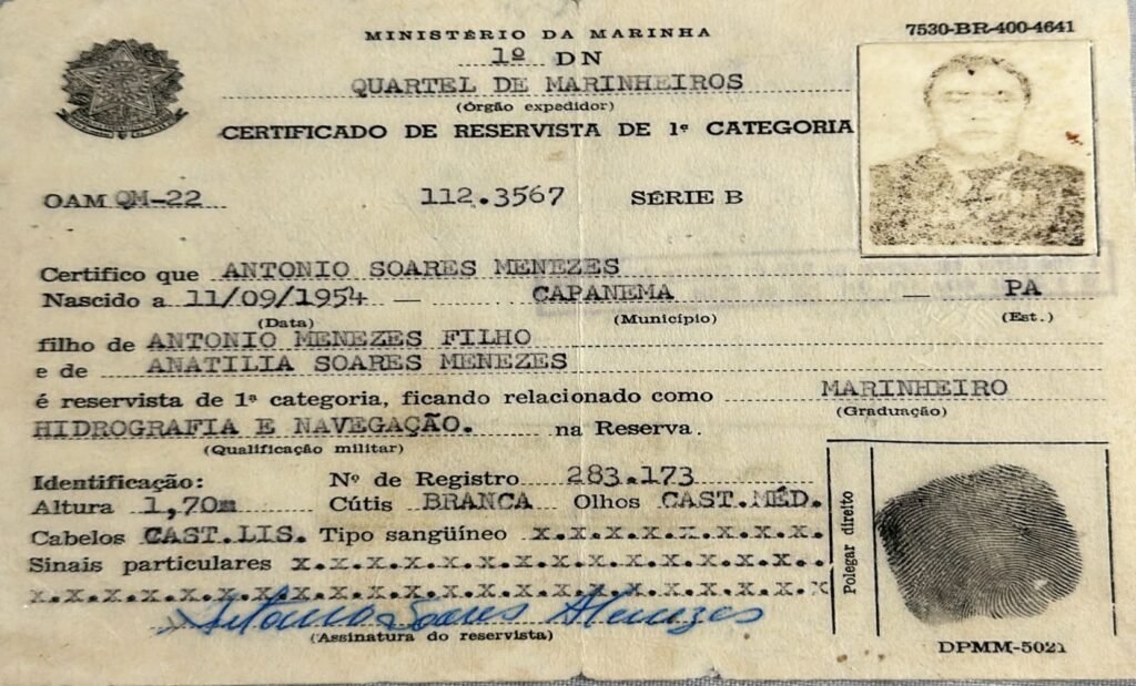 Aos 19 anos, ingressou na Marinha do Brasil, onde serviu de 1973 a 1981. Sua experiência no mar moldou o homem forte e dedicado que viria a ser, levando-o a uma segunda fase como motorista, profissão em que dedicou muitos anos de sua vida. Em suas jornadas diárias ao volante, Antônio ganhou a admiração e o respeito de todos que o conheceram por sua dedicação e seu compromisso com o trabalho.